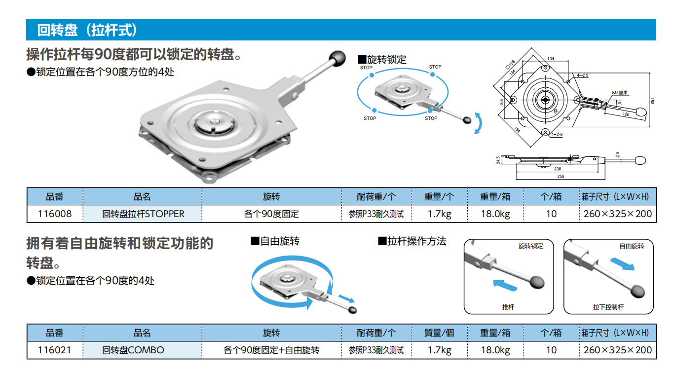 操作拉杆每90度都可以锁定的转盘。